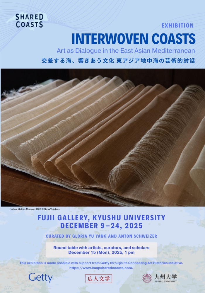 This is the capstone event of the Getty-sponsored project Shared Coasts, Divided Historiographies. The exhibition is open at Kyushu University’s Fujii Gallery from December 9 to 24. Artworks by four artists—Uehara Michiko, Nema Satoko, Taira Yuki, and Komiya Yukina—explore artistic dialogues across the East Asian Mediterranean.